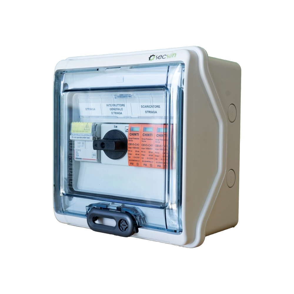 SECSUN QCM1801L QUADRO DI CAMPO 1 STRINGA 800 VDC LIGHTSECSUN QCM1602L QUADRO DI CAMPO 2 STRINGHE IN PARALLELO 600 VDC LIGHT